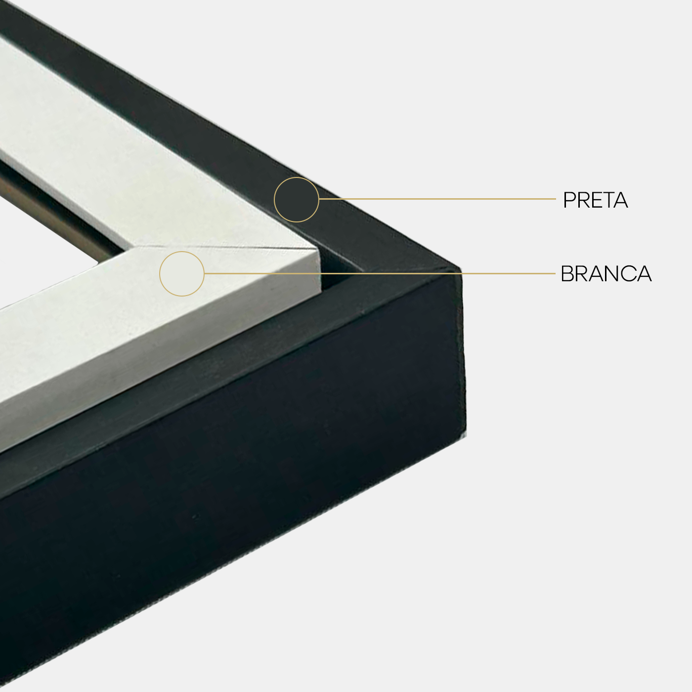 Um estilo de moldura minimalista, extremamente charmosa e transmite a sensação de leveza devido ao filete frontal, a combinação de quadros com essa moldura é muito utilizada.